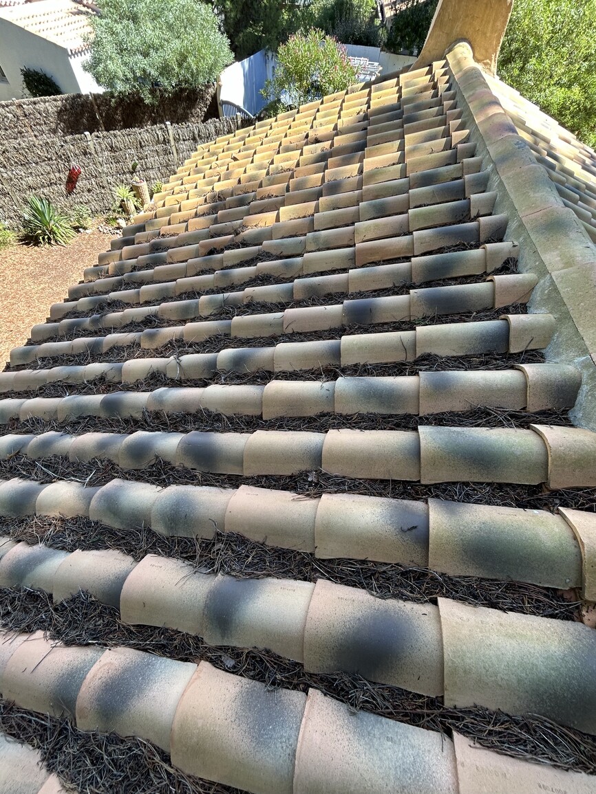 Couvreur à Noirmoutier 85 - Nettoyage de la toiture et enlèvement des épines de pins à la main